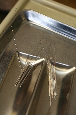 鍼が初めての人や、鍼が弱い人には、細い鍼を使用しますが、筋肉が凝り固まっている人、痛みがひどい方には太い鍼を刺します。